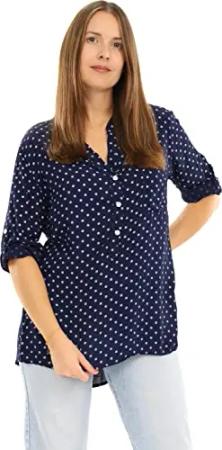 Malito Damen Bluse mit Punkten | Tunika mit ¾ Armen | Blusenshirt auch Langarm tragbar | Elegant - Shirt 3419 (dunkelblau)