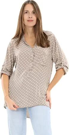 Malito Damen Bluse mit Punkten | Tunika mit ¾ Armen | Blusenshirt auch Langarm tragbar | Elegant - Shirt 3419 (Fango)