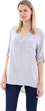 Malito Damen Bluse mit Punkten | Tunika mit ¾ Armen | Blusenshirt auch Langarm tragbar | Elegant - Shirt 3419 (hellgrau)