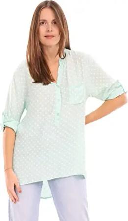 Malito Damen Bluse mit Punkten | Tunika mit ¾ Armen | Blusenshirt auch Langarm tragbar | Elegant - Shirt 3419 (Mint)