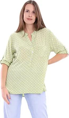 Malito Damen Bluse mit Punkten | Tunika mit ¾ Armen | Blusenshirt auch Langarm tragbar | Elegant - Shirt 3419 (Pistazie)