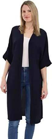 Malito - Damen Kimono - Cardigan für den Sommer - Tunika Poncho Blazer für den Alltag - Strand Party Bikini Cover Up Basic 2342 (Größe: 34-42 dunkelblau)