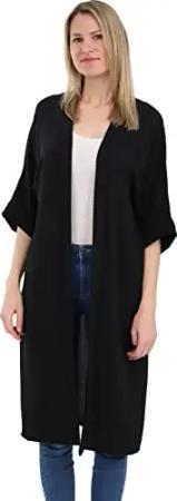 Malito - Damen Kimono - Cardigan für den Sommer - Tunika Poncho Blazer für den Alltag - Strand Party Bikini Cover Up Basic 2342 (Größe: 34-42 schwarz)