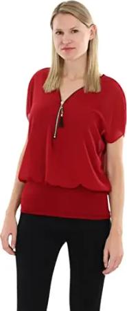 Malito Damen Kurzarm Bluse im Fledermaus Look | Tunika mit Zipper | T-Shirt mit breitem Bund | Shirt - elegant 6298 (Bordeaux)