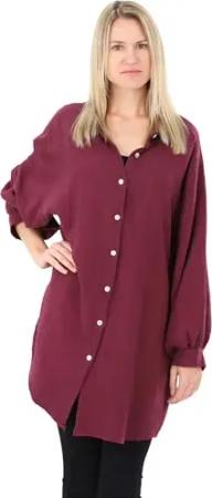 Malito Damen Musselin Bluse - Langarm Blusenhemd - langes Oversize Hemd aus Baumwolle - Long Shirt Strand Cover Up 20914 (Bordeaux 34-46)