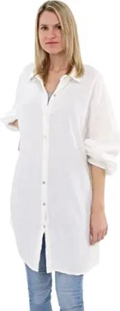 Malito Damen Musselin Bluse - Langarm Blusenhemd - langes Oversize Hemd aus Baumwolle - Long Shirt Strand Cover Up 20914 (weiß 34-46)