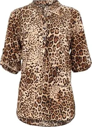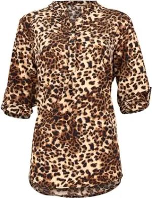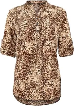 Malito – Unisize Damen Bluse mit Leopardenmuster & ¾ Ärmeln – Animal Print Tunika mit Leo Muster – Elegante Oversize Schlupfbluse 36702 (Fango | Größe 34-42)