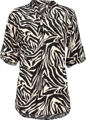 Malito - Damen Schlupfbluse - Langarm Bluse mit Animalprint - krempelbare Tunika Leopard - Blusenshirt Büro & Alltag 2310 - Zebra
