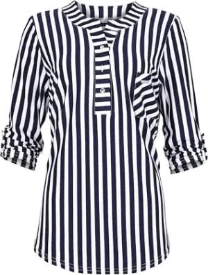 Malito - Damen Schlupfbluse - legere Stretch Bluse - Elegantes Blusenshirt mit 3/4 Arm - Basic Damenbluse 6666 - (Blau-Streifen L)