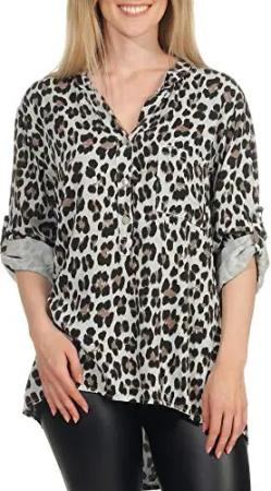 Malito – Unisize Damen Bluse mit Leopardenmuster & ¾ Ärmeln – Animal Print Tunika mit Leo Muster – Elegante Oversize Schlupfbluse 6702 (Hellgrau | Größe 34-42)