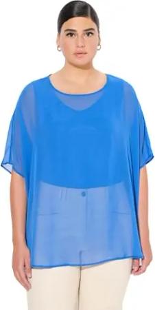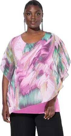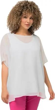 Damen große Größen Übergrößen Plus Size Chiffonbluse, Oversized, Rundhals, Halbarm