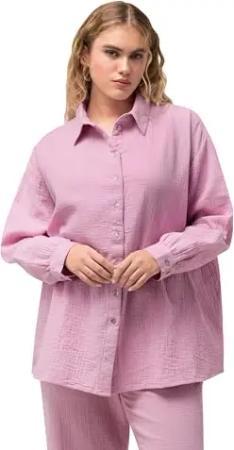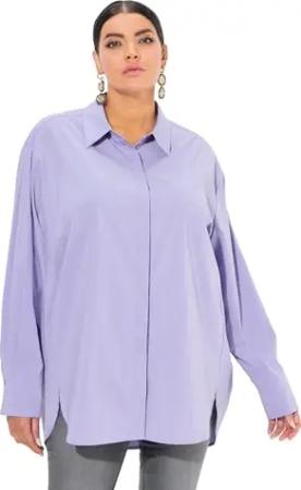 Damen große Größen Übergrößen Plus Size Musselin-Bluse, Oversized, Tunika-Ausschnitt, Halbarm Lavendel 46+ 827543808-46+