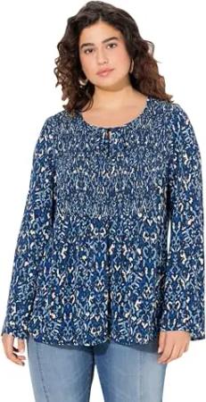 Damen große Größen Übergrößen Plus Size Bluse, gesmokt, Rundhals, ausgestellter Langarm
