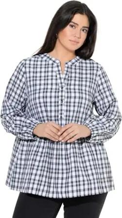 Damen große Größen Übergrößen Plus Size Bluse, Karomuster, Volantsaum, Stehkragen, Langarm schwarz 42+ 835975100-42+