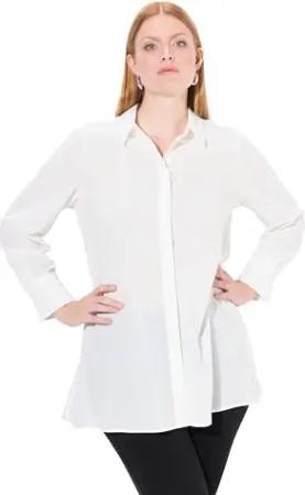 Damen Hemdkragenbluse Oversize Blusen, Schneeweiß, 54-56 EU
