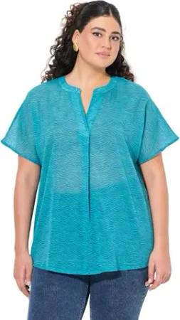 Damen große Größen Übergrößen Plus Size Bluse, Zebramuster, A-Linie, V-Ausschnitt, Halbarm tiefes Aqua 50+ 838490740-50+