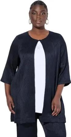 Damen große Größen Übergrößen Plus Size Blusenjacke, A-Linie, Rundhals, Rücken-Kellerfalte Dunkles Marine 54+ 835814120-54+