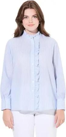 Damen große Größen Übergrößen Plus Size Streifenbluse, Rüschen, Stehkragen, Langarm