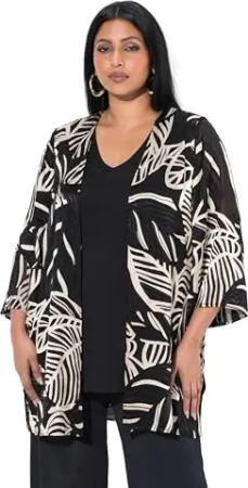 Damen große Größen Übergrößen Plus Size Chiffon-Jacke, Ausbrenner, V-Ausschnitt, 3/4-Arm schwarz 54+ 838458100-54+