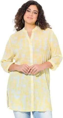 Damen große Größen Übergrößen Plus Size Longbluse, Bedruckt, Stehkragen, 3/4-Arm, Krepp Sorbet gelb 46+ 837926603-46+