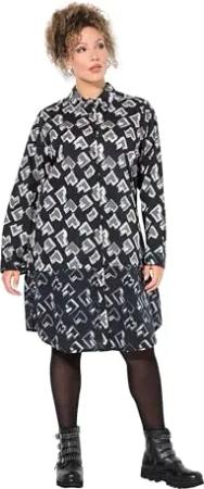 Damen große Größen Übergrößen Plus Size Longbluse, Herzen, A-Linie, Hemdkragen, Langarm schwarz 58+ 834986100-58+