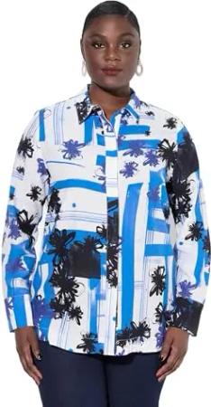 Damen große Größen Übergrößen Plus Size Longbluse mit Patch Print