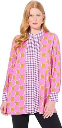 Damen große Größen Übergrößen Plus Size Hemdbluse, Perlmuttknöpfe, Oversized, Hemdkragen, Langarm