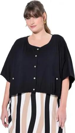 Damen, große Größen, Bluse, Rücken-Knöpfe, Oversized, Zierfalte, Halbarm