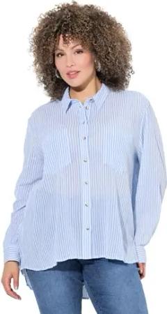 Damen große Größen Übergrößen Plus Size Streifenbluse, Crepeware, Vokuhila