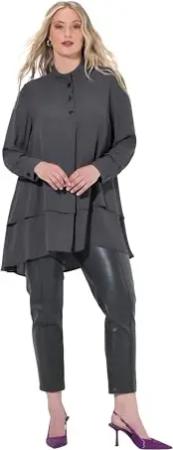Damen große Größen Übergrößen Plus Size Tunika, Lagenoptik, A-Linie, Stehkragen, Langarm