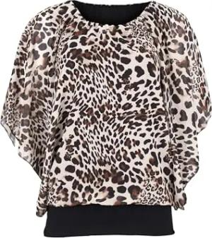 Malito – Damen Bluse in Fledermauslook – Tunika Kurzarm mit bequemen Schnitt – Elegantes Oversize Blusenshirt mit breitem Bund – Shirt Leo-Print & Uni 6296 - (Leo-Beige)
