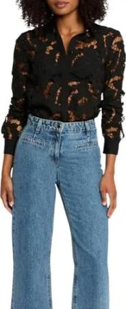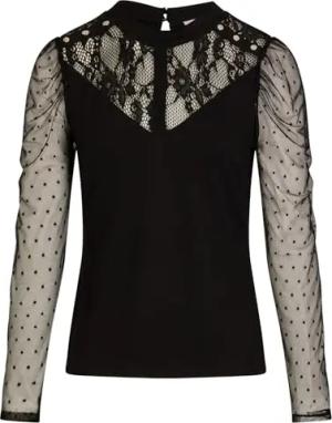 Bluse, kurzärmlig, Spitze, Schlitz, Schwarz, Größe S