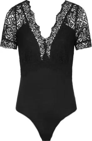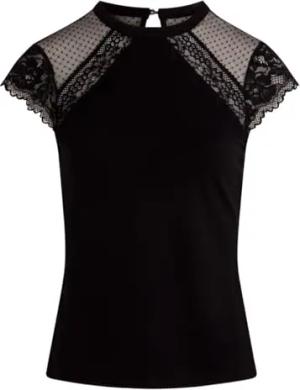 T-Shirt, kurzärmelig, mit Spitze, Schwarz, Größe S