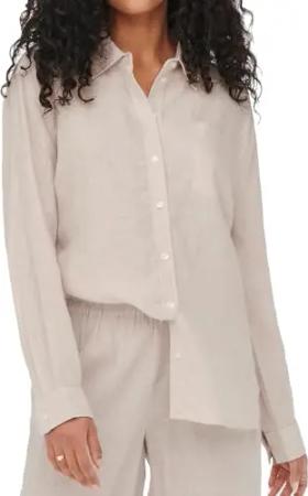 Damen Onltokyo L/S Linen Blend Shirt PNT Noos Langarmhemd Mit Normaler Passform Und Knopfverschluss 15259585,Moonbeam,XL