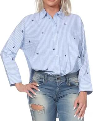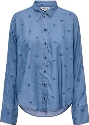 Damen Onlnew Lina Grace Ls Emb Shirt Noos WVN Knopfverschluss Box Fit Hemd Mit Langen Ärmeln, Brunnera Blue, M