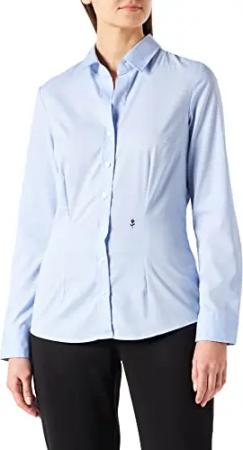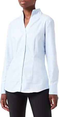 Damen Women Slim Longsleeve Cotton Bluse, Hellblau, 44 EU