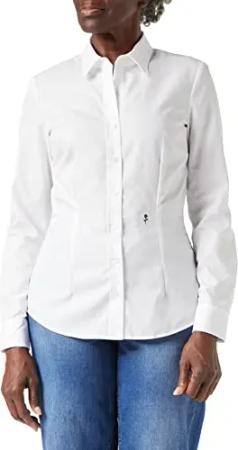 Damen City Langarm Slim Fit Hemdblusenkragen Bluse, Weiß, 48 EU