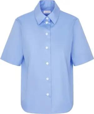 Damen Bluse - City Bluse - Hemdbluse - Regular Fit - Kurzarm - Uni - 100% Baumwolle