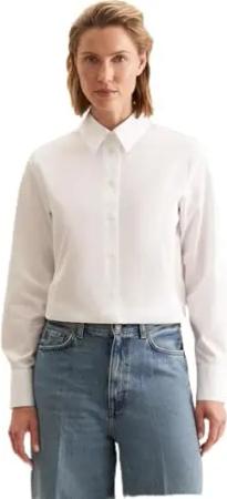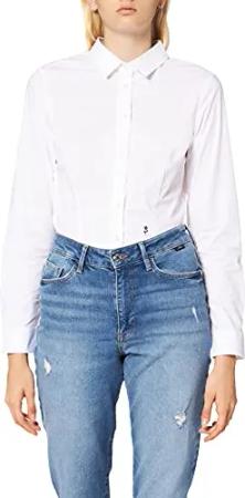 Damen Women Slim Longsleeve Cotton Bluse, Weiß(080645), 34 EU