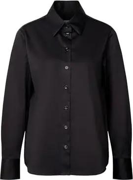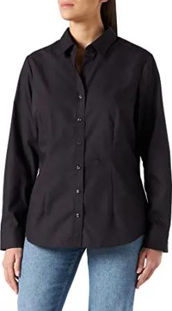 Damen Women Slim Longsleeve Cotton Bluse, Schwarz(080613), 42 EU
