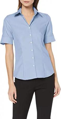 Damen City Kurzarm Regular Fit Uni Bügelfrei Hemdbluse, Hellblau, 52 EU