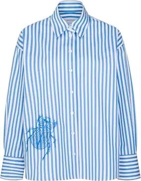 Damen Women Slim Longsleeve Cotton Bluse, Hellblau Streifen(080619), 36 EU