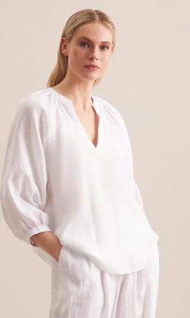 Damen Shirtbluse Oversized 3/4 ohne Kragen 88% Modal 12% Polyester