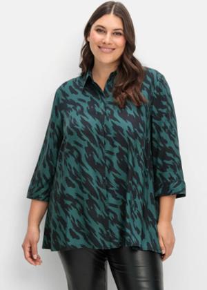 Große Größen: Bedruckte Bluse in schwingender A-Linie, schwarz gemustert, Gr.40-60