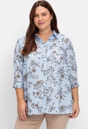 Große Größen: Bluse in leichter A-Linie, mit floralem Print, hellblau gemustert, Gr.40-56