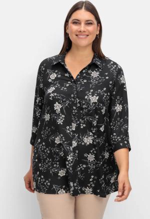 Große Größen: Bluse in leichter A-Linie, mit floralem Print, schwarz gemustert, Gr.40-56