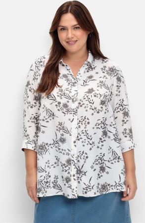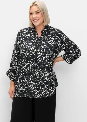 Große Größen: Hemdbluse mit Blätterprint und 3/4-Arm, schwarz-weiß gemustert, Gr.40-58