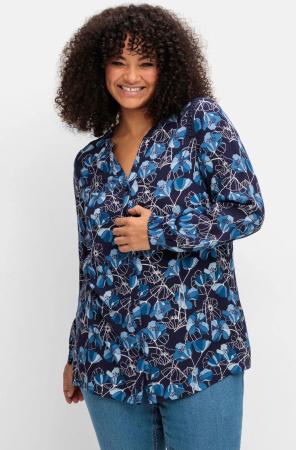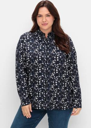Große Größen: Bluse mit Blütenprint und Spitzenborte, marine gemustert, Gr.40-58