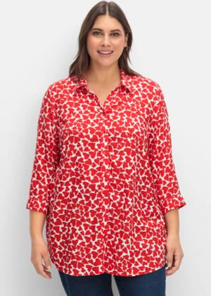 Große Größen: Bluse mit Herz-Alloverprint und 3/4-Ärmeln, rot gemustert, Gr.40-56