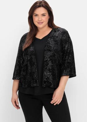 Große Größen: Blusenjacke mit Pailletten und 3/4-Ärmeln, schwarz, Gr.40-58